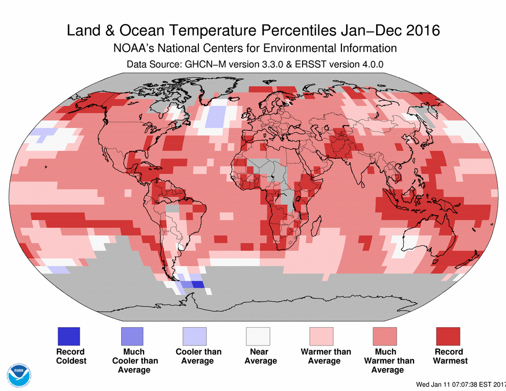 201601-201612-1 Published January 18, 2017 at 990 × 765 in 2016: Earth’s Third Consecutive Warmest Year on Record 2016 was record warm. Credit: NOAA